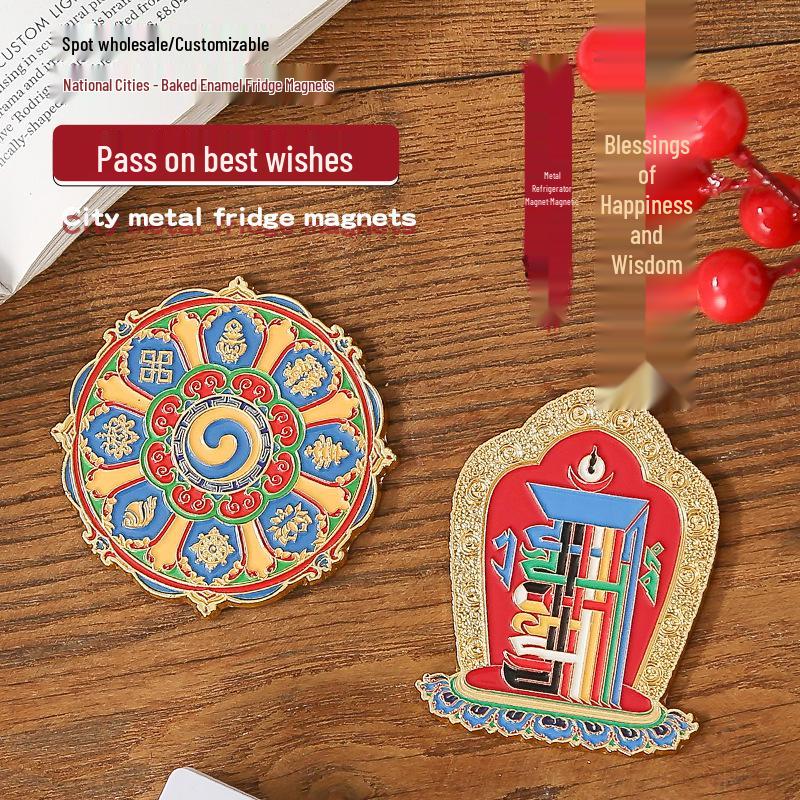 Auspicious Eight Treasures Metal Magnet: Enamel Souvenir of Cultural Freedom