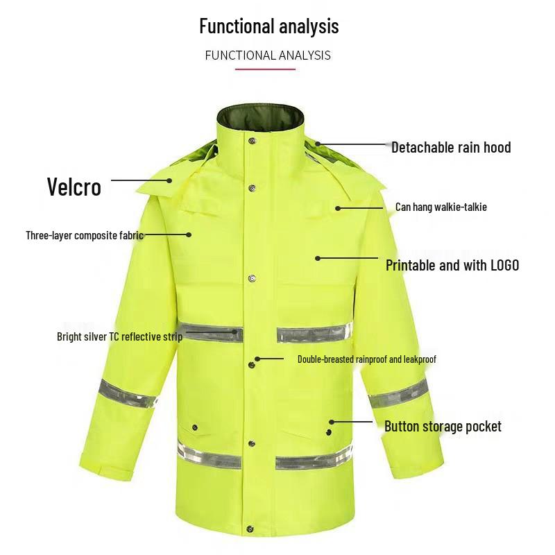 This versatile rainwear set is designed to keep you dry and visible in challenging weather conditions, ideal for traffic duty and outdoor activities. The set includes a durable raincoat and matching pants, both crafted from a three-layer composite material that offers excellent rainproof protection while remaining breathable. For added safety, the suit features reflective elements that enhance visibility in low-light environments. Its practical design includes adjustable cuffs and a hood for a personalized fit, ensuring comfort and functionality throughout the day. Perfect for professionals needing reliable rain protection.