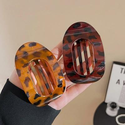 French Hair Clips Trendy Hair Accessories Fashion Oval Flat Hair Clips for Women New Design Leopard Large Flat Round Claw Clip