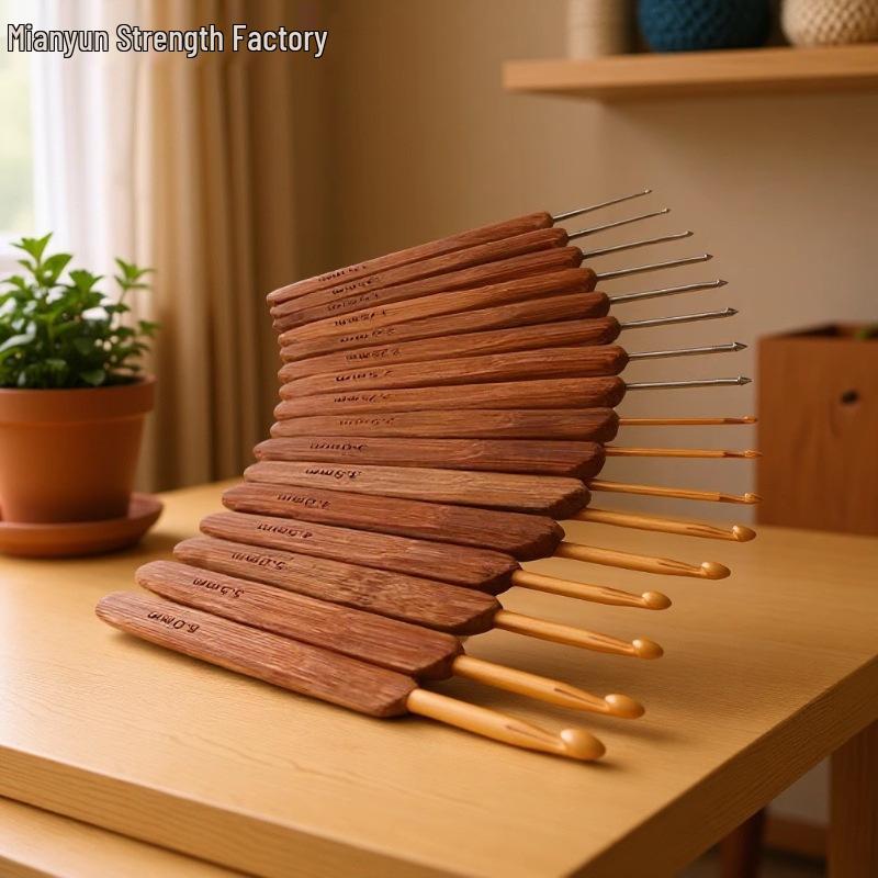 Blood Sandalwood Handle Crochet Hook - Non-slip Handmade Micro Needle for Yarn and Knitting with Safety Pin