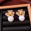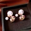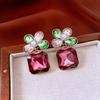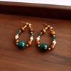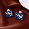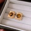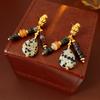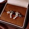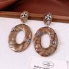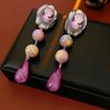 Silver Needle Diamond Oval Pendant Fringed Earrings Medieval Vintage Court Style Stud Earrings Light Luxury Retro Earrings