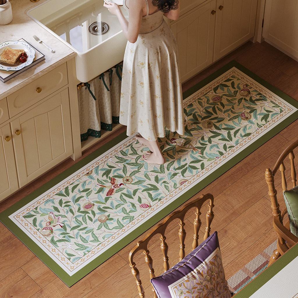 Kitchen Floor Mat Non-Slip Waterproof Oil-Proof Carpet Retro Bird Plant Pattern Pvc Rug Long Strip Home Decoration Mats
