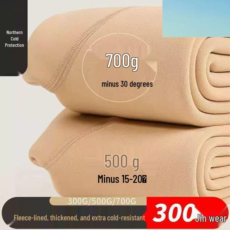 Plus Size Open Crotch Fleece-Lined Nylon Stockings, Thick Warm Leggings for Autumn/Winter