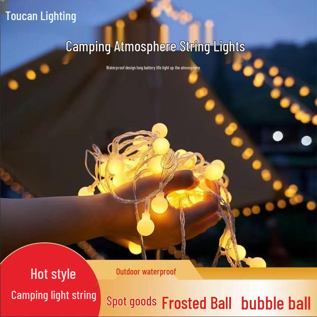 Frosted Bubble Ball, Star, and Cherry Blossom String Lights for Outdoor Camping Tent Decor