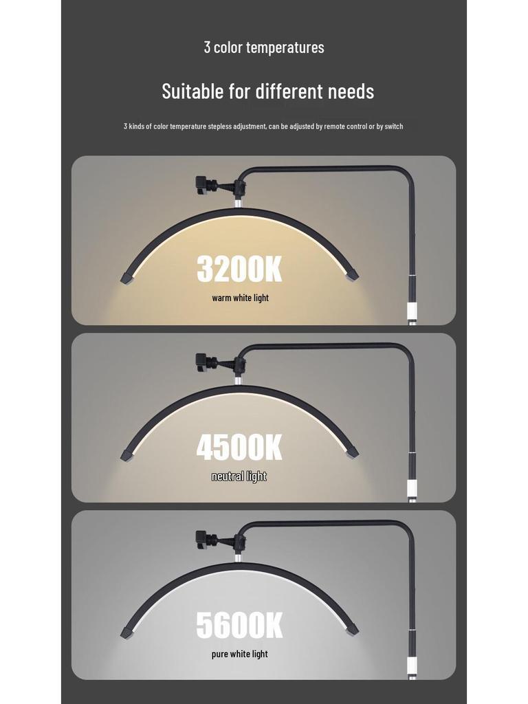 Beauty Salon Multi-Angle Half-Moon Floor Lamp for Manicure, Eyelash, Tattoo, Eyebrow, & Facial Lighting