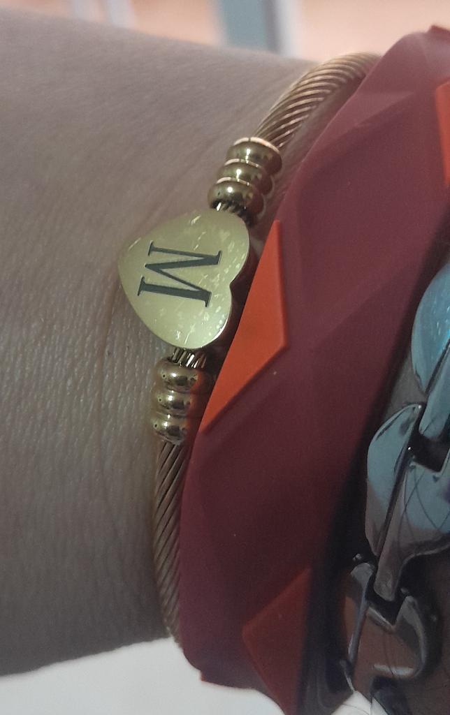 26 Letters Stainless Steel Heart Bracelet - Simple Titanium Steel Open Bangle for Women
