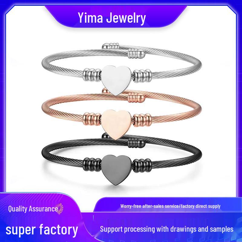 Trendy Women's Heart-Shaped Woven Steel Wire Bangle - Titanium Steel DIY Bracelet