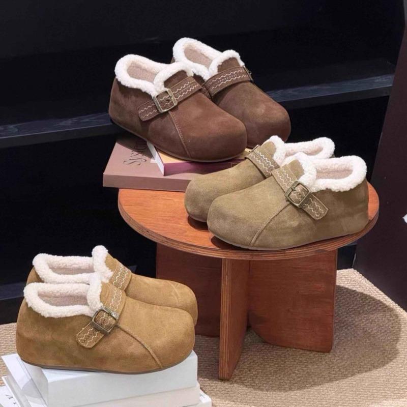 Retro Inner Height Increase and Velvet Women's Autumn and Winter New Versatile Lazy One-pedal Flat Beanie Shoes