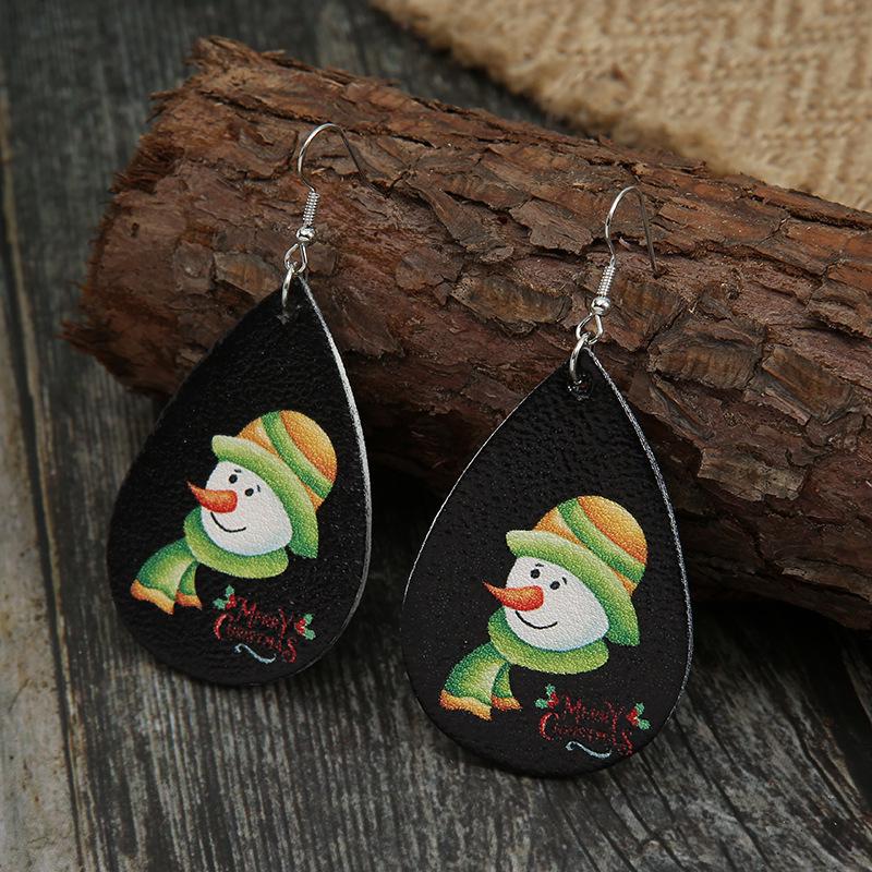 Christmas Cartoon Snowman Leather Earrings - Double-Sided PU Dangles