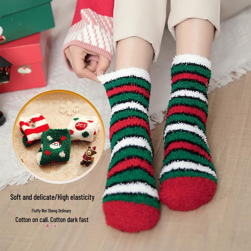 Women's Coral Fleece Mid-Calf Socks - Thickened, Half-Velvet, Winter Home & Floor Wear, Autumn/Christmas Style