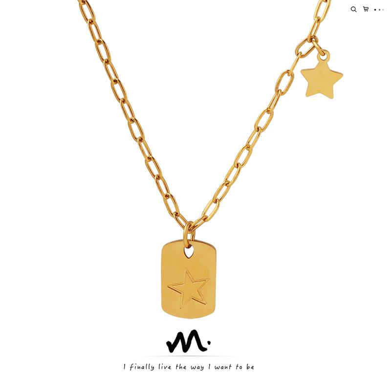 European & American Style Five-Pointed Star Pendant Hoodie Necklace – Women's Titanium Steel Clavicle Chain
