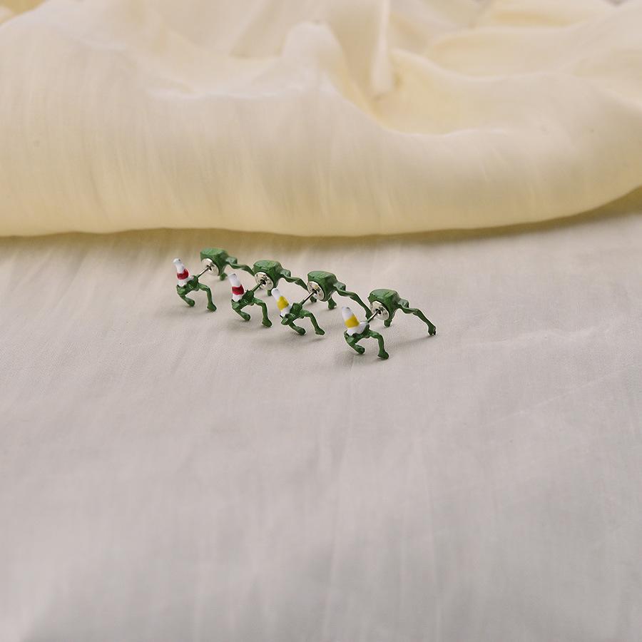 Festive Frog Earrings with Christmas Hats - Playful Hip-Hop Style for Parties