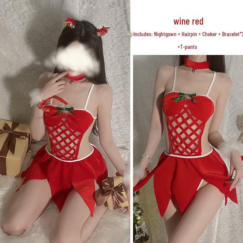 Red Hot Christmas Lingerie: Women's Erotic Hollow-Out Nightgown