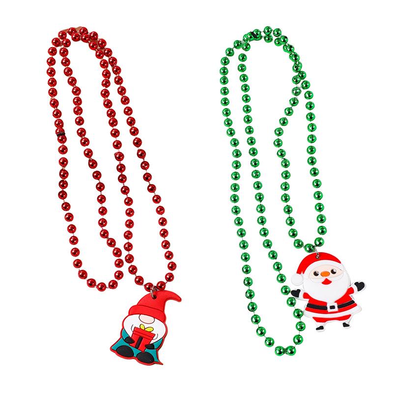 European & American Christmas Drip Oil Beaded Necklace: Cartoon Santa, Wreath & Tree Design for Women