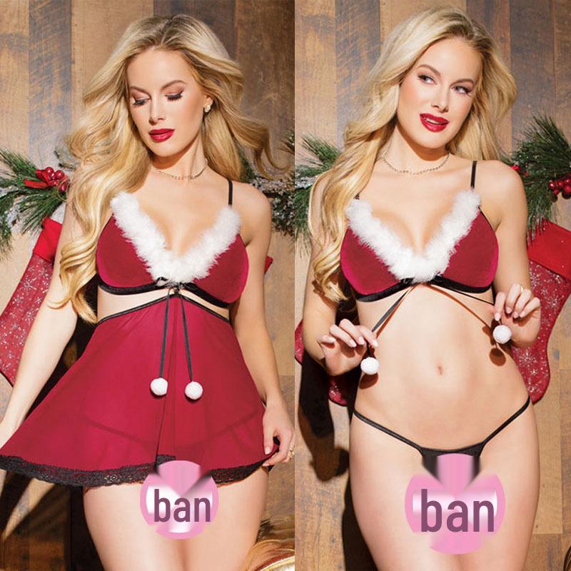 2018 Sexy Christmas Bikini Three-Piece Lingerie Set