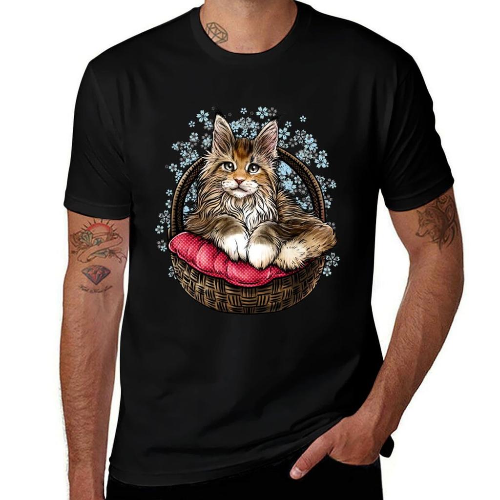 Funny Maine Coon Cat Pet Animal T-Shirt Men T Shirt Cotton 100% Man T Shirt Designer T Shirt for Man 100 Percent Cotton T-Shirt