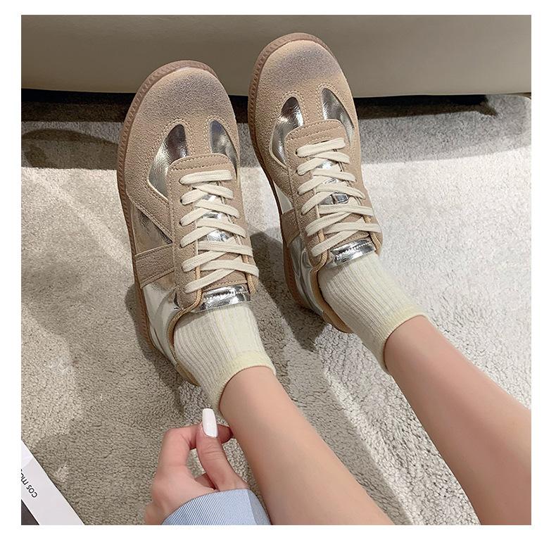 Cowhide Version Retro Polish Silver Women's New Versatile Lace-up Single Shoes Sports Casual Flat Bottom