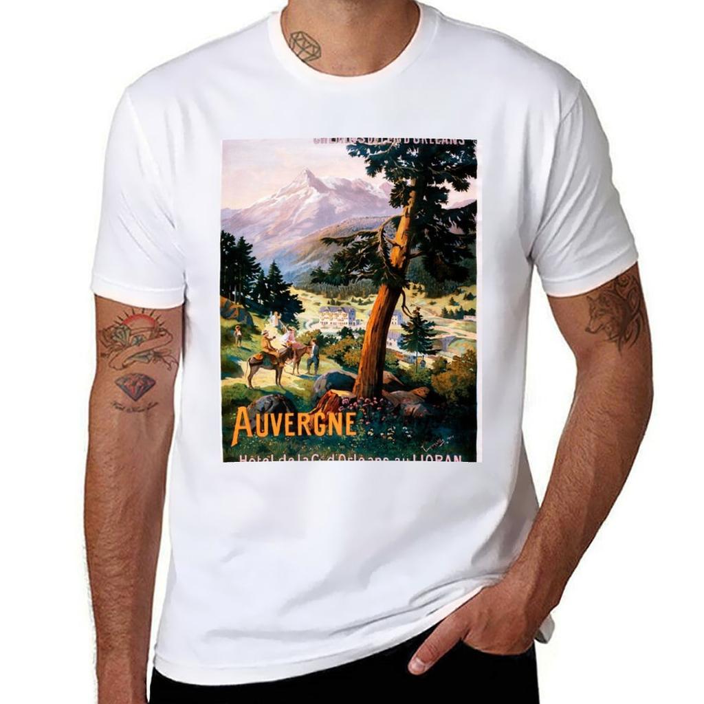 Auvergne, French Travel Poster T-Shirt T Shirts for Man Slim Fit T Shirt Men 100% Cotton Luxury Brand T-Shirt