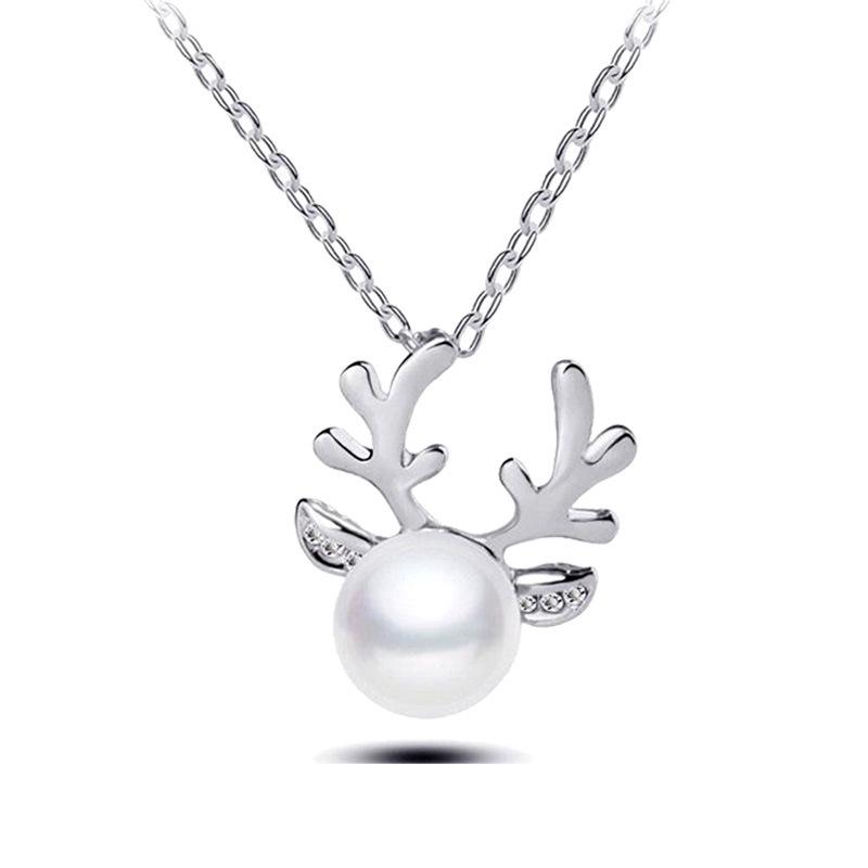 European & American Christmas Rhinestone Pearl Antler Necklace - Short Style