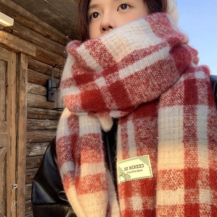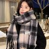 2025 Winter Red Plaid Scarf: Unisex Korean Style Blue & Black Neck Warmer