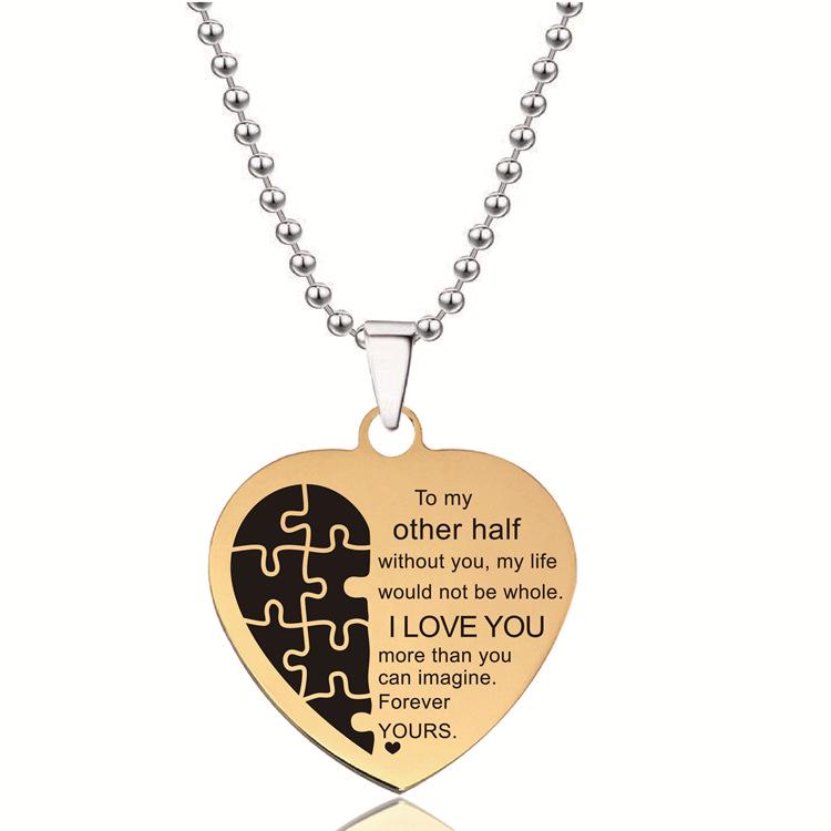 Heart-Engraved Titanium Steel Necklace - Gold, Heart-Shaped, Cross-Border Jewelry, Perfect Christmas Gift