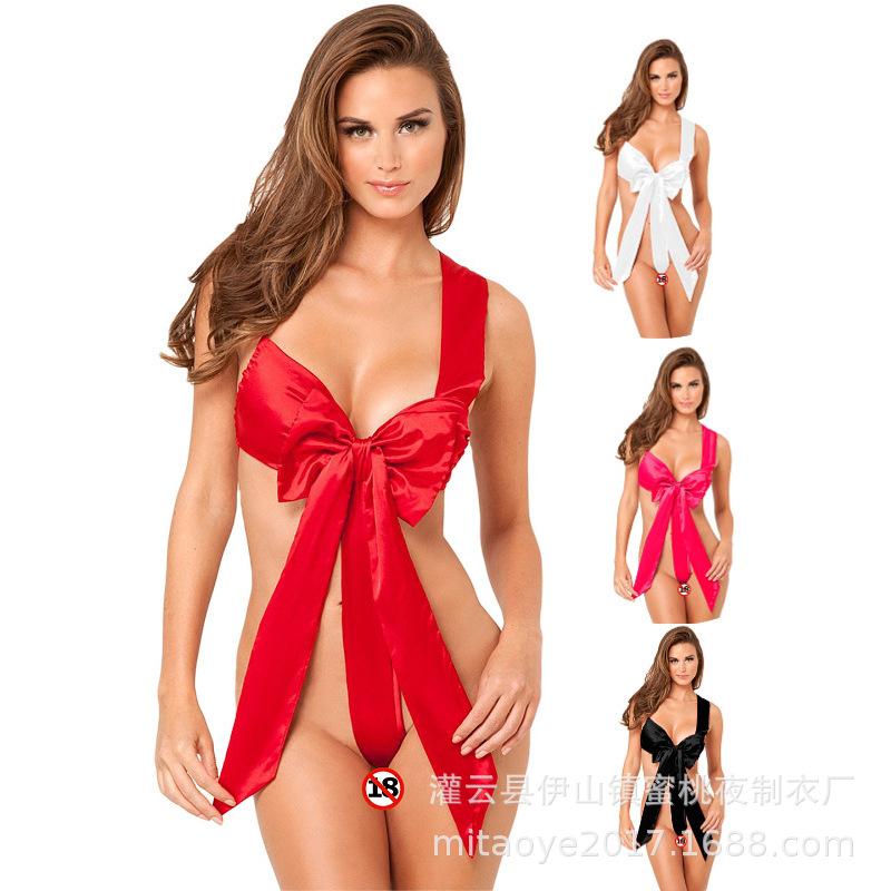Red Bow Christmas Lingerie Set: One-Piece Temptation