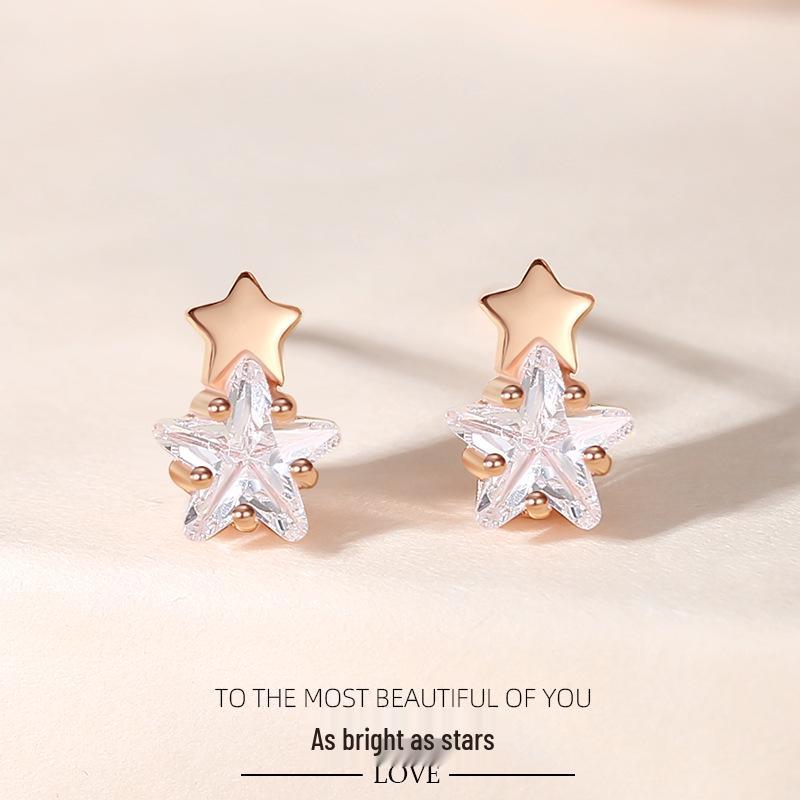 Korean S925 Sterling Silver Star Stud Earrings for Women - Zircon, Internet Celebrity Style, Christmas Gift