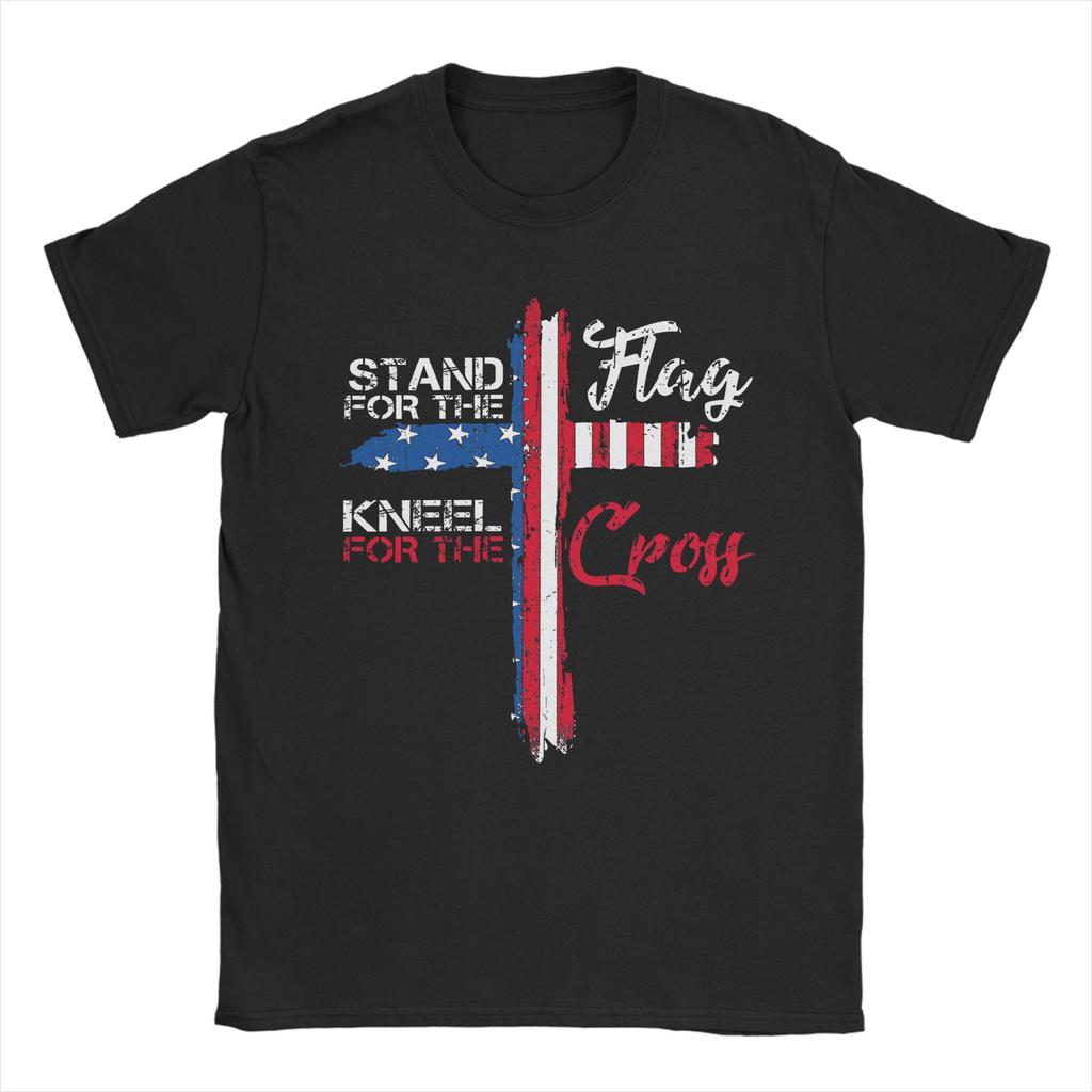 Stand For The Flag I Kneel For The Cross T-Shirt Summer Cotton T-Shirts For Men Hip Hop Casual Tshirt Short Sleeve Clothing