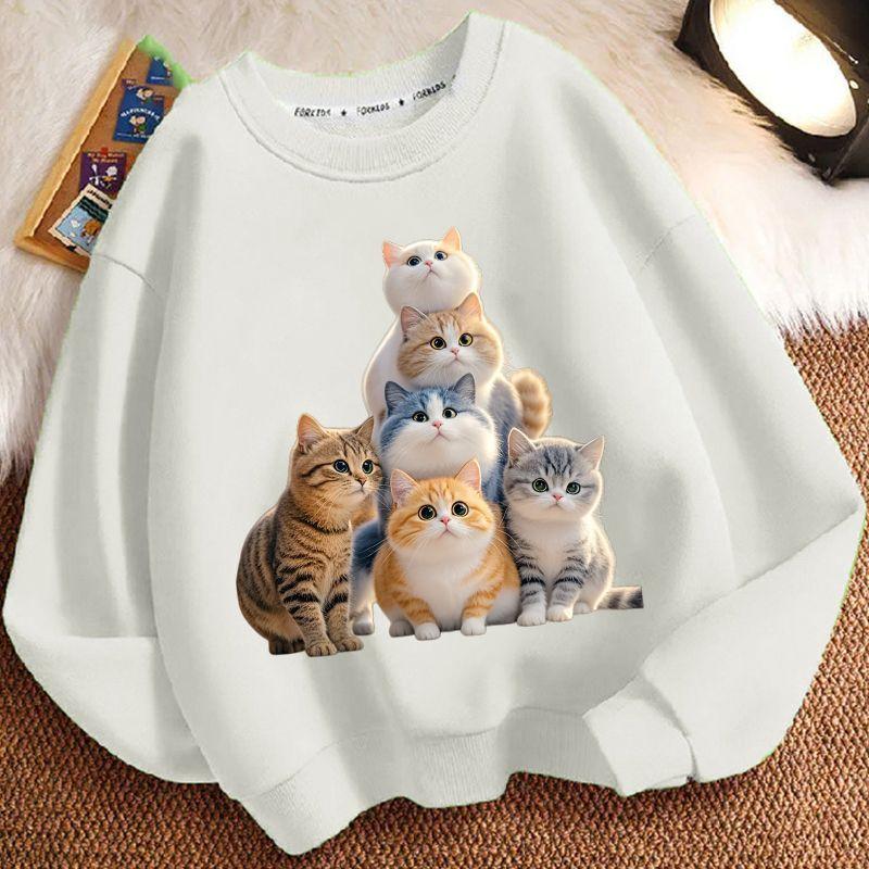 Cute Little Cat Hoodies for Children In Autumn and Winter, Casual Long-sleeved Round-neck Hoodies for Boys and Girls