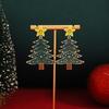 Red Green Star Diamond Christmas Tree Earrings for Women: Creative Color Blocking Drip Oil Design
