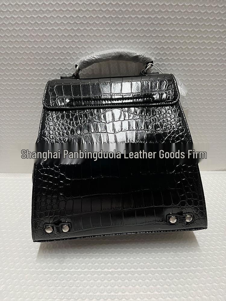2025 Trendy Black Crocodile Print Backpack - Large Capacity, Cool & Casual Style