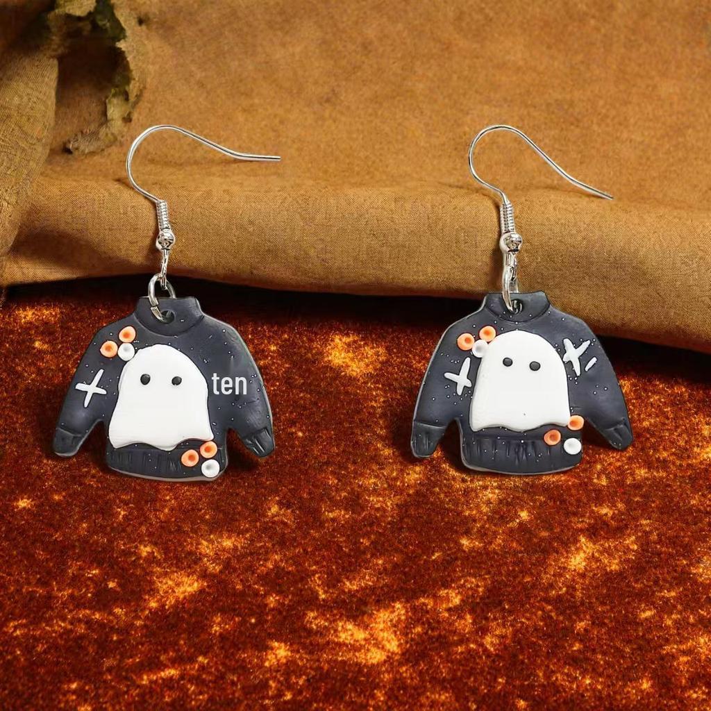 Women's Cute Halloween Ghost & Christmas Tree Polymer Clay Earrings