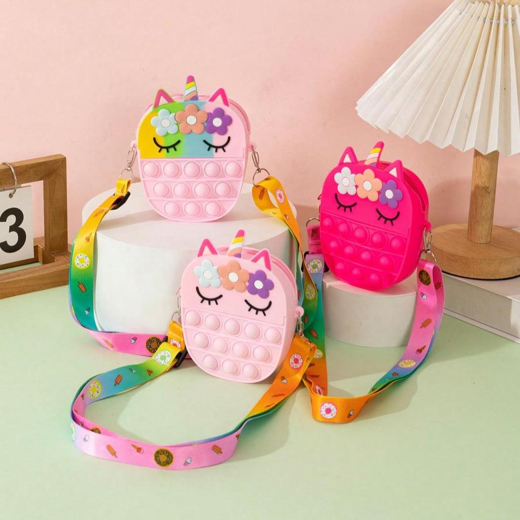 Unicorn Bubble Music Silicone Crossbody Coin Purse for Kids