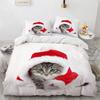 Cat Merry Christmas Santa Claus Bedding Set Boys Girls Twin Queen Size Duvet Cover Pillowcase Bed Kids Adult Home Textileextile