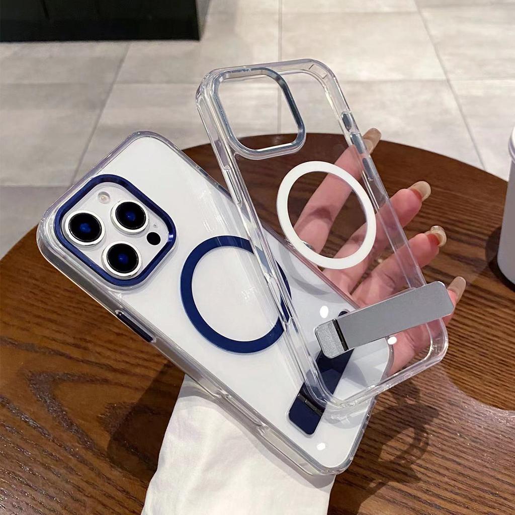 High End Minimalist Couple Phone Case with High Aesthetic Value, Crystal Clear Hardware Horizontal Stand Phone Case for Apple 15pro Phone Case