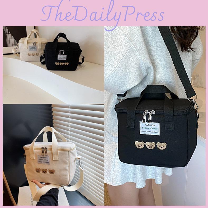 Bear Teddy Embroidered Double Zipper Messenger Bag Simple Square Shoulder Bags