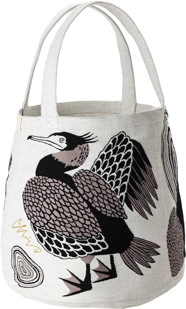 Kusunokibashi Monori MiW Tote Bag with a Design of Smiling Cormorants by the Ivory [moritaMiW] River, [A-67834-90-I]