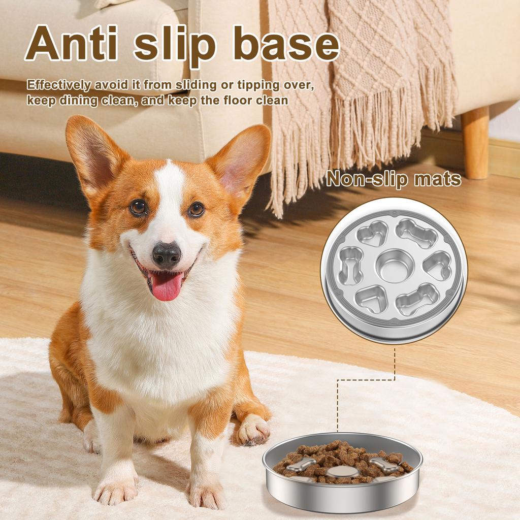 Stainless Steel Slow Feeder Dog Bowl Anti Choke Dog Food Bowl with Nonslip Bottom Dishwasher Safe Square/Round for Pet Home