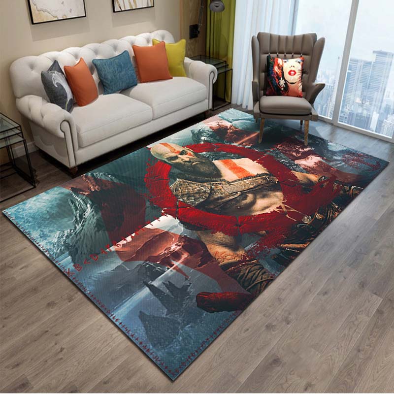 15 Sizes Kratos God-of-War Gamer Area Rug Large,Carpet for Living Room Bedroom Sofa Doormat Decor,Kids Play Non-slip Floor Mat