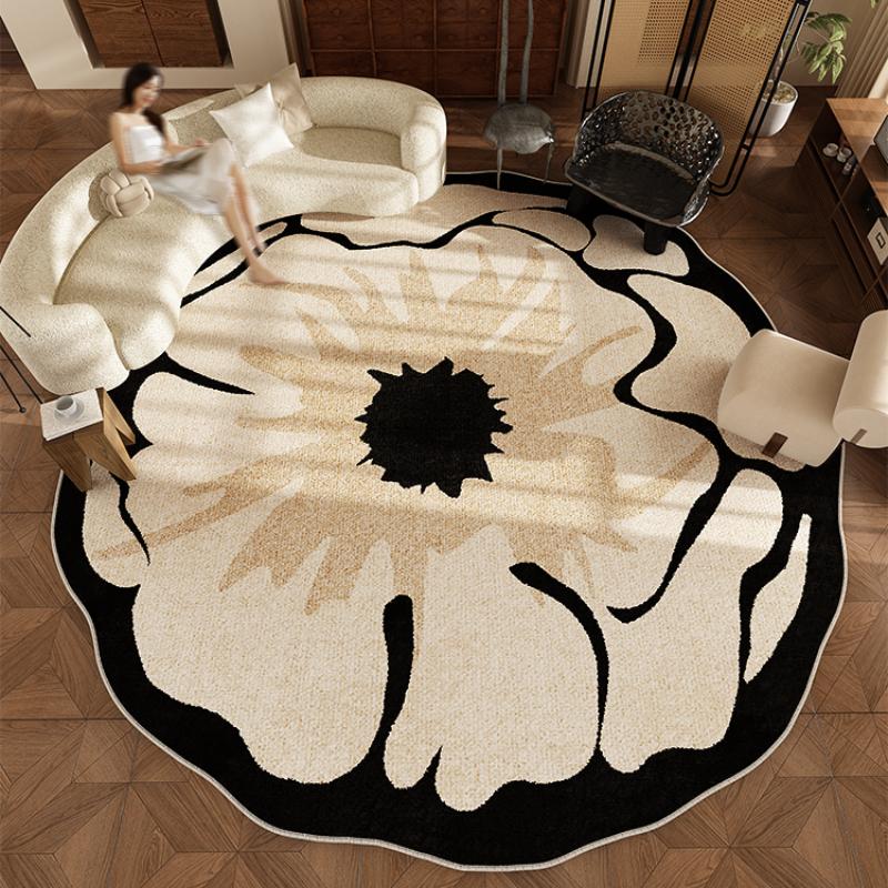 Retro Style Carpets for Living Room Large Area Bedroom Decor Carpet Home Washable Soft Study Rug Flower Shape Non-slip Floor Mat