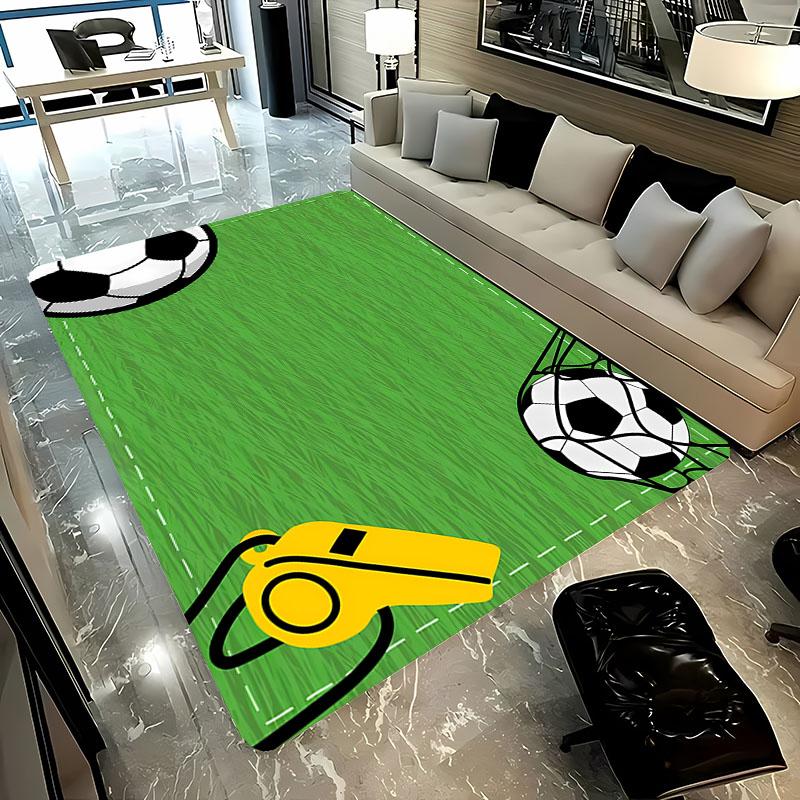 Cartoon Football Field Carpet Sports Theme Play Mat for Boys Girls Green Soccer Field Floor Mats Gift for Football/Soccer Lovers