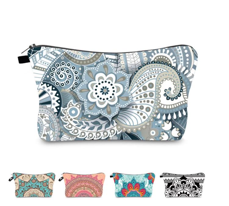 Cosmetic Bag Makeup Bag Waterproof Travel Toiletry Pouch Bag with Mandala Flowers Design