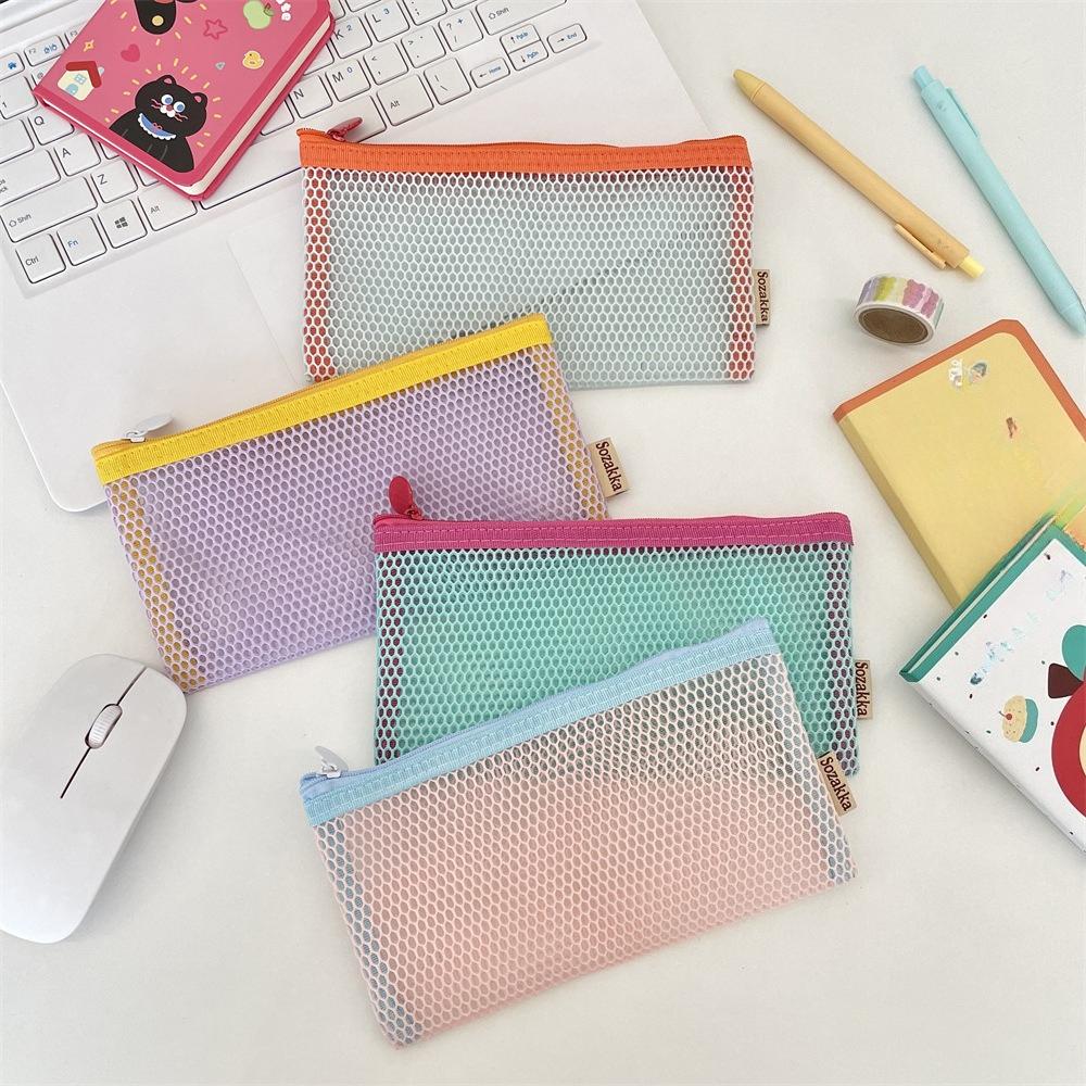 Simple Transparent Zipper Pencil Case Mesh Cosmetic Storage Bag Clear Stationery Bag Nylon Makeup Pouch Portable Travel Handbag