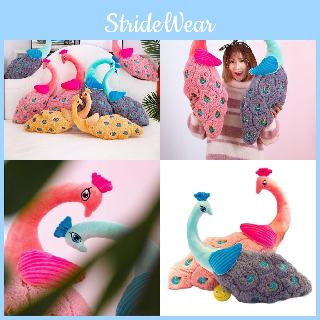 This plush peacock toy features a realistic animal design with soft, short pile fabric for a gentle touch. Made of PP cotton filling, it measures 60cm,70cm,90cm. Its vibrant pink, blue, or yellow colors support visual appeal and durability. Ideal for room decor or gift-giving, it is suitable for children's play, nursery decoration, or as a collectible. Wipe clean with a damp cloth to maintain its appearance.