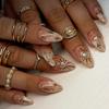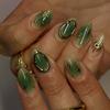 24PCS Golden Star Almond Press On Nails Simple Green French with Pearl Fake Nails for Women Sweet Cool Wearable False Nails Tips