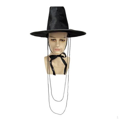 Stage Performance Hat Ming Dynasty Traditional Korean Flat Topper Hat Wide Brim UV Protection Black Halloween Cosplay Cap Men Costume Accessory