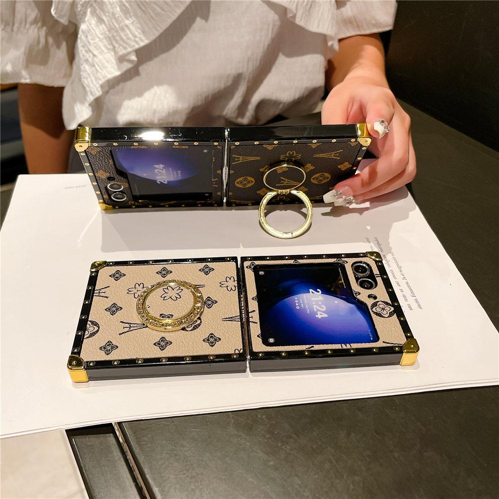 Vintage Ring Holder Stand Flower Leather Case For Samsung Galaxy Z Flip 6 Shockproof Cover