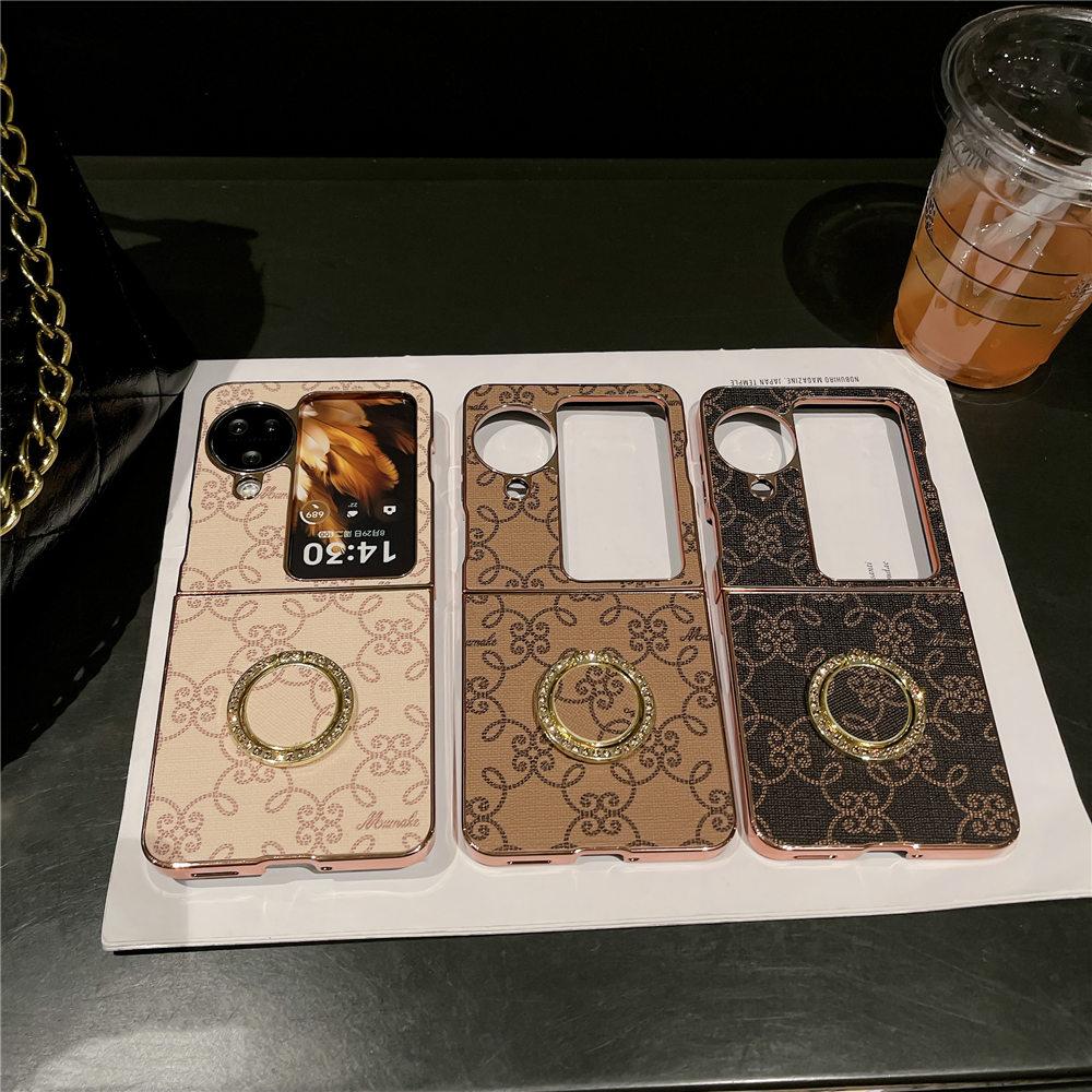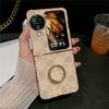 Electroplating Leather Ring Stand Phone Case For OPPO Find N3 Flip/N2 Flip Shockproof Flower Cover