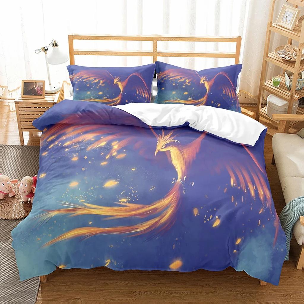 Phoenix Duvet Cover Set King Queen Size For Kids Boy Girls Bedding Set Yellow Animals Pattern Polyester Quilt Cover With Zipper