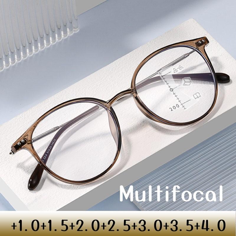 Round Mutifocal Progressive Reading Glasses Unisex Luxury Near Far Presbyopia Eyeglasses Fashion Design Transparent Eyewear